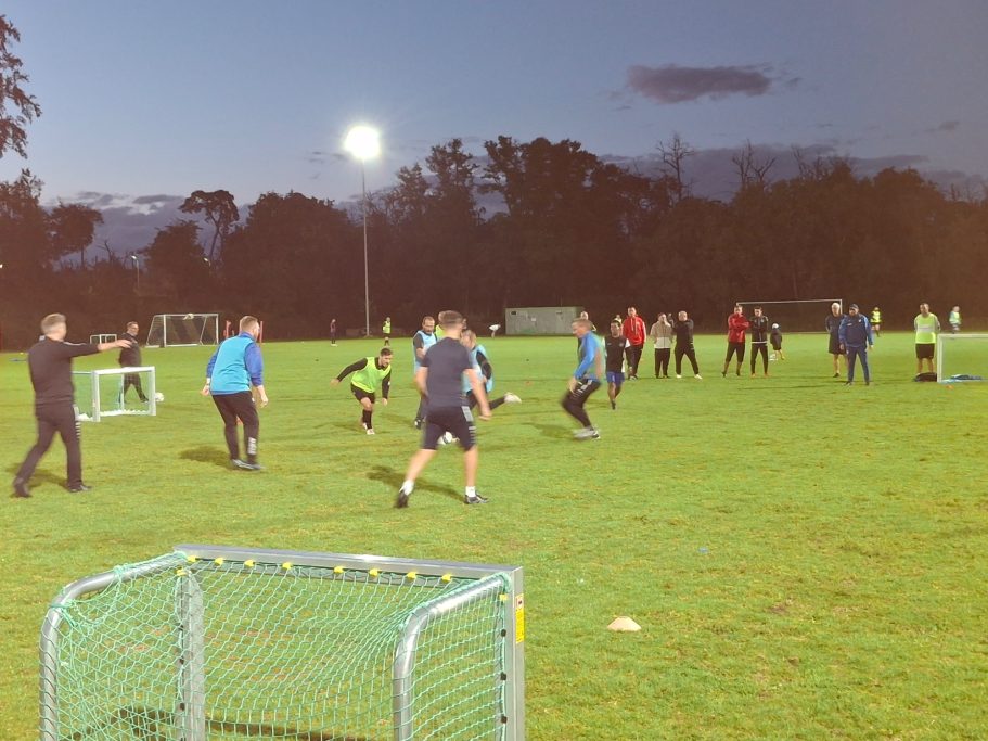 Im anschließenden Praxisteil wurde die Theorie auf dem Platz lebendig. In intensiven Spielformen – von 3-gegen-1 bis 7-gegen-5 – trainierten die Teilnehmenden, Druck auf den Ballführenden auszuüben, Ballverluste gezielt zu provozieren und schnell wieder in Ballbesitz zu kommen.
