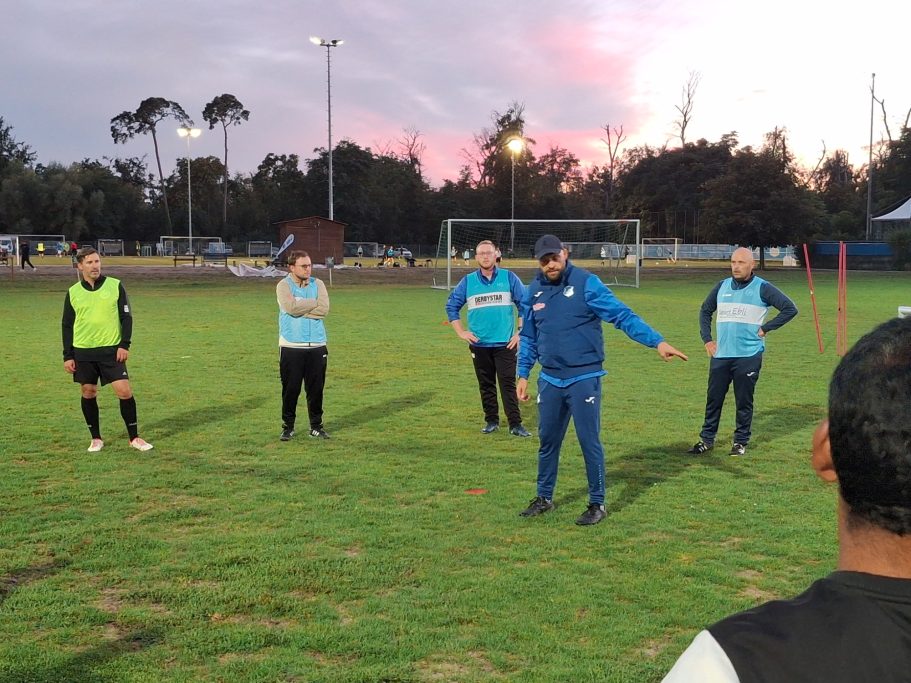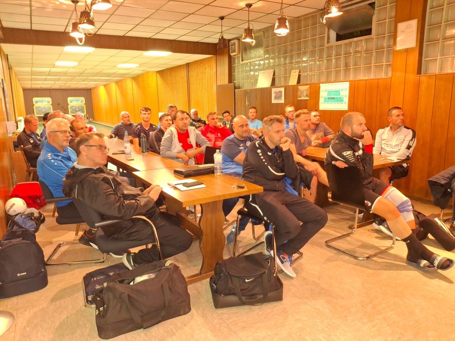 In einer kompakten theoretischen Einführung setzten sich die Teilnehmenden strukturiert und praxisnah mit der Spielphase „nach Ballverlust“ auseinander. Schnell wurde deutlich: Gegenpressing ist weit mehr als bloßes Nachsetzen – es ist das blitzschnelle Umschalten von Angriff auf Verteidigung., was den Unterschied machen kann.